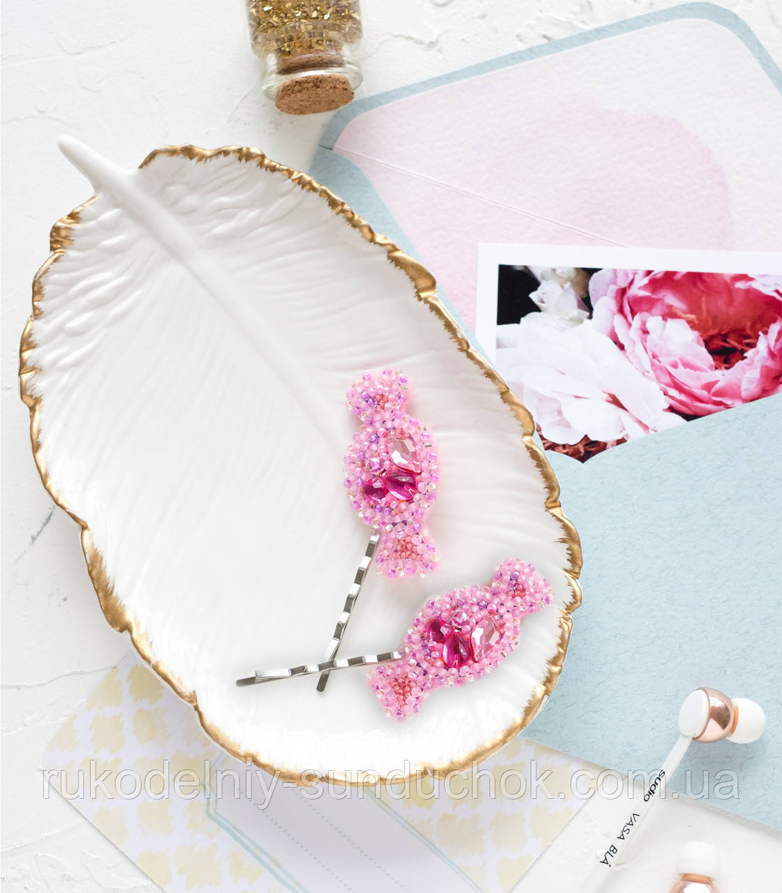 Назва Вашого майбутнього шедевра - Набір для вишивання бісером прикраси для волосся на натуральному художньому холсті "Цукерка"
